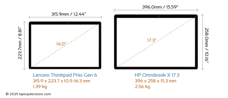 ThunderboltBoth Thinkpad P14s Gen 6 and Omnibook X 17.3 are equipped with Thunderbolt 4 ports.