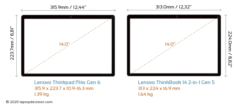 Audio JackBoth Thinkpad P14s Gen 6 and ThinkBook 14 2-in-1 Gen 5 are equipped with a 3.5mm Audio Jack, providing seamless connection to headphones and speakers.