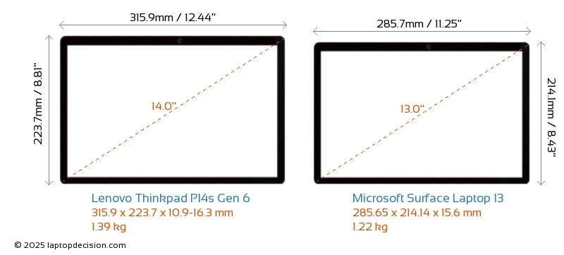 Audio JackBoth Thinkpad P14s Gen 6 and Surface Laptop 13 are equipped with a 3.5mm Audio Jack, providing seamless connection to headphones and speakers.