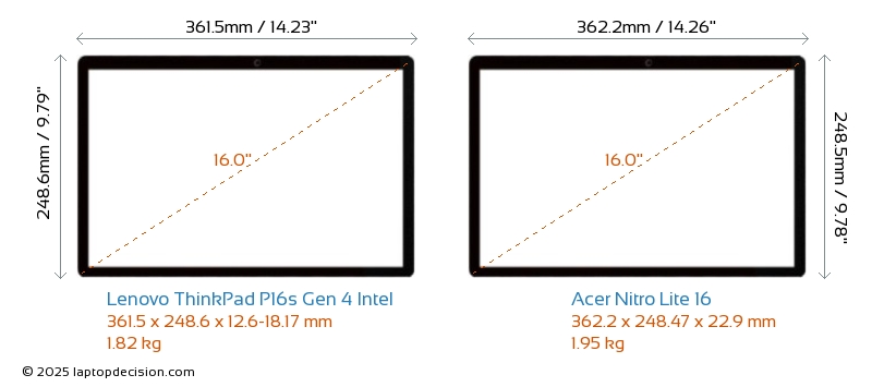 USBBoth ThinkPad P16s Gen 4 Intel and Nitro Lite 16 feature 2x USB 3.2 USB-A ports.Both ThinkPad P16s Gen 4 Intel and Nitro Lite 16 have USB Type-C ports. ThinkPad P16s Gen 4 Intel has 2x USB 4.0 USB Type-C ports, while Nitro Lite 16 has 1x USB 4.0 USB Type-C ports.