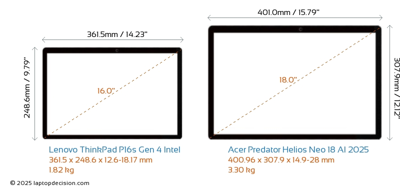 HDMIBoth ThinkPad P16s Gen 4 Intel and Predator Helios Neo 18 AI 2025 feature an HDMI port (1x HDMI 2.1) for connecting to external monitors.