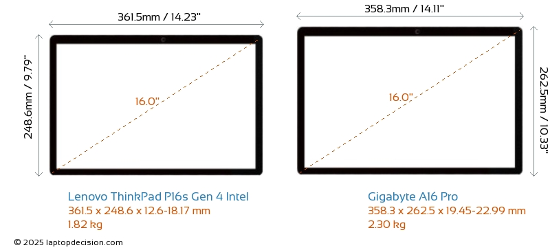 Thunderbolt ThinkPad P16s Gen 4 Intel is equipped with Thunderbolt 4 port. A16 Pro does not have Thunderbolt port.