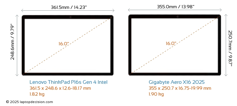 Thunderbolt ThinkPad P16s Gen 4 Intel is equipped with Thunderbolt 4 port. Aero X16 2025 does not have Thunderbolt port.