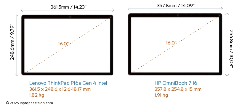Audio JackBoth ThinkPad P16s Gen 4 Intel and OmniBook 7 16 are equipped with a 3.5mm Audio Jack, providing seamless connection to headphones and speakers.