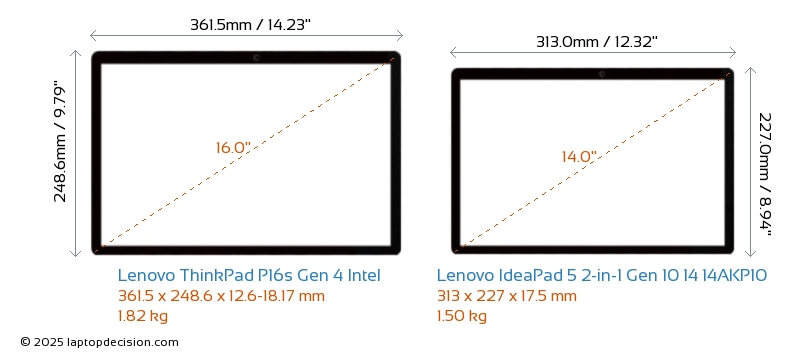 HDMIBoth ThinkPad P16s Gen 4 Intel and IdeaPad 5 2-in-1 Gen 10 14 14AKP10 feature an HDMI port. ThinkPad P16s Gen 4 Intel offers 1x HDMI 2.1, while IdeaPad 5 2-in-1 Gen 10 14 14AKP10 offers 1x HDMI 1.4.