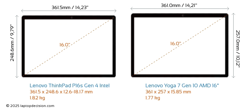 ThunderboltBoth ThinkPad P16s Gen 4 Intel and Yoga 7 Gen 10 AMD 16" are equipped with Thunderbolt 4 ports.