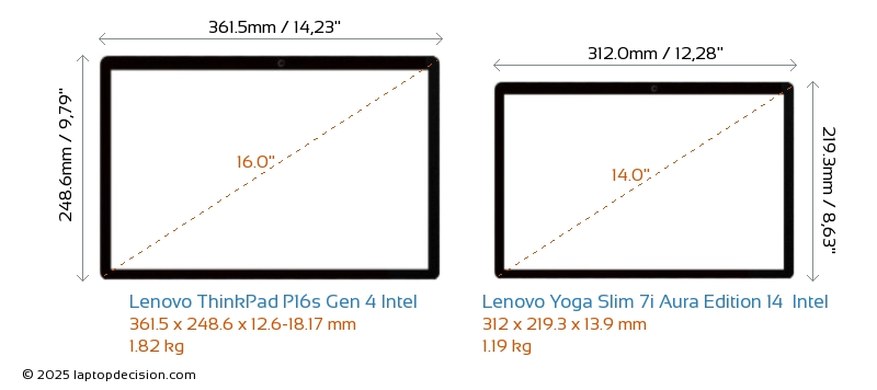 ThunderboltBoth ThinkPad P16s Gen 4 Intel and Yoga Slim 7i Aura Edition 14 Intel are equipped with Thunderbolt 4 ports.