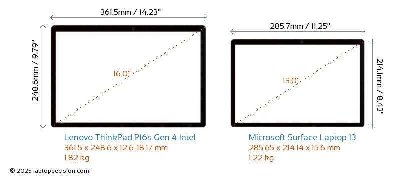 Audio JackBoth ThinkPad P16s Gen 4 Intel and Surface Laptop 13 are equipped with a 3.5mm Audio Jack, providing seamless connection to headphones and speakers.