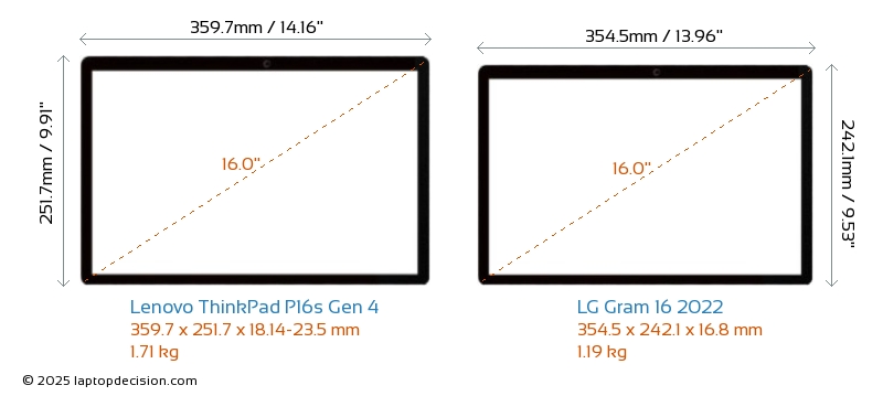 HDMIBoth ThinkPad P16s Gen 4 and Gram 16 2022 feature an HDMI port. ThinkPad P16s Gen 4 offers 1x HDMI 2.1, while Gram 16 2022 offers 1x HDMI 2.0.
