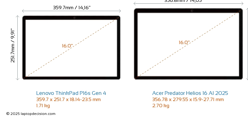 Audio JackBoth ThinkPad P16s Gen 4 and Predator Helios 16 AI 2025 are equipped with a 3.5mm Audio Jack, providing seamless connection to headphones and speakers.