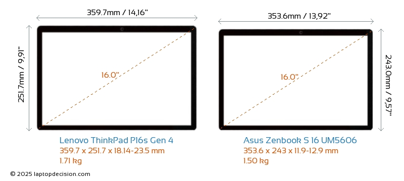 Audio JackBoth ThinkPad P16s Gen 4 and Zenbook S 16 UM5606 are equipped with a 3.5mm Audio Jack, providing seamless connection to headphones and speakers.