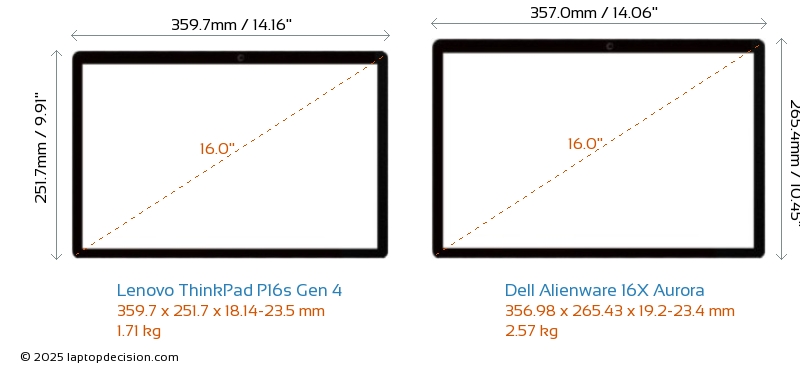ThunderboltBoth ThinkPad P16s Gen 4 and Alienware 16X Aurora are equipped with Thunderbolt 4 ports.