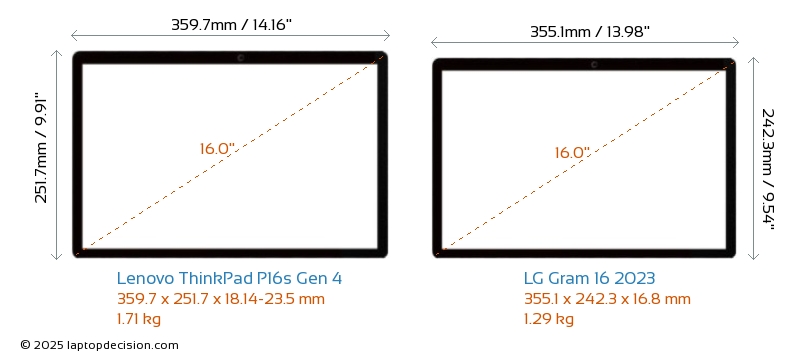 HDMIBoth ThinkPad P16s Gen 4 and Gram 16 2023 feature an HDMI port. ThinkPad P16s Gen 4 offers 1x HDMI 2.1, while Gram 16 2023 offers 1x HDMI 2.0.