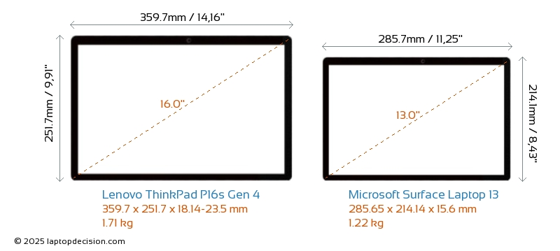 HDMI ThinkPad P16s Gen 4 features an HDMI port (1x HDMI 2.1) for connecting to external monitors. Surface Laptop 13 does not have an HDMI port.