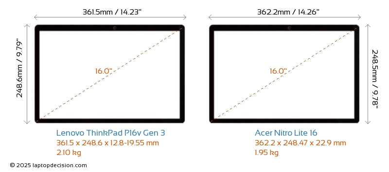 HDMIBoth ThinkPad P16v Gen 3 and Nitro Lite 16 feature an HDMI port (1x HDMI 2.1) for connecting to external monitors.