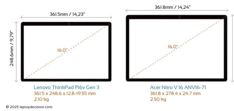 Audio JackBoth ThinkPad P16v Gen 3 and Nitro V 16 ANV16-71 are equipped with a 3.5mm Audio Jack, providing seamless connection to headphones and speakers.