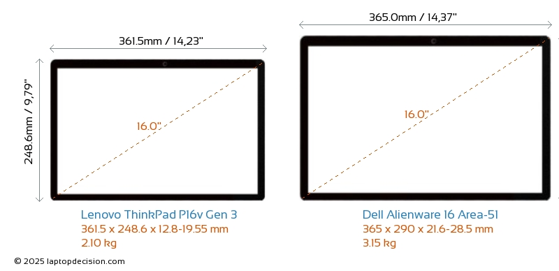 ThunderboltBoth ThinkPad P16v Gen 3 and Alienware 16 Area-51 feature Thunderbolt ports. ThinkPad P16v Gen 3 has Thunderbolt 4, while Alienware 16 Area-51 has Thunderbolt 5.