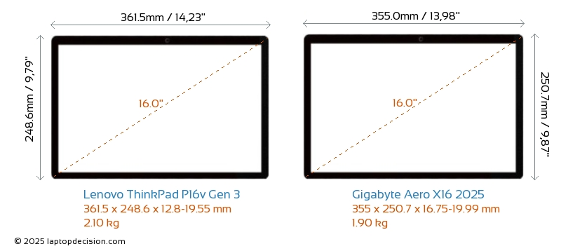 Wifi ThinkPad P16v Gen 3 features a more advanced Wi-Fi standard v7, providing faster and more reliable wireless connections compared to Aero X16 2025 (v6E).