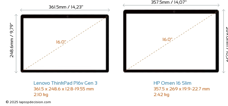 HDMIBoth ThinkPad P16v Gen 3 and Omen 16 Slim feature an HDMI port (1x HDMI 2.1) for connecting to external monitors.