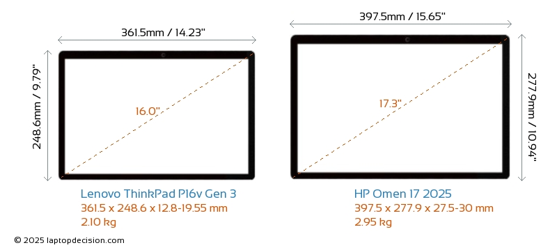 Wifi ThinkPad P16v Gen 3 features a more advanced Wi-Fi standard v7, providing faster and more reliable wireless connections compared to Omen 17 2025 (v6E).