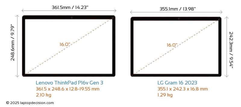 HDMIBoth ThinkPad P16v Gen 3 and Gram 16 2023 feature an HDMI port. ThinkPad P16v Gen 3 offers 1x HDMI 2.1, while Gram 16 2023 offers 1x HDMI 2.0.