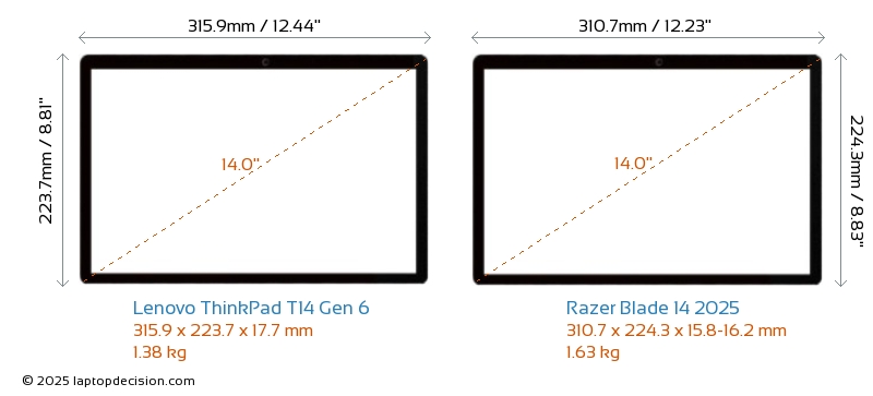 HDMIBoth ThinkPad T14 Gen 6 and Blade 14 2025 feature an HDMI port (1x HDMI 2.1) for connecting to external monitors.