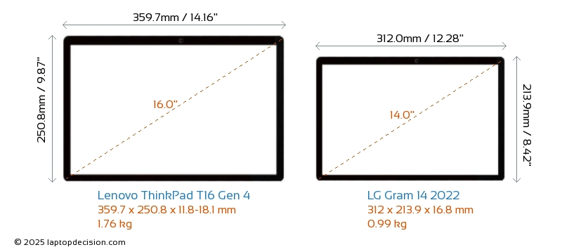 HDMIBoth ThinkPad T16 Gen 4 and Gram 14 2022 feature an HDMI port. ThinkPad T16 Gen 4 offers 1x HDMI 2.1, while Gram 14 2022 offers 1x HDMI 2.0.