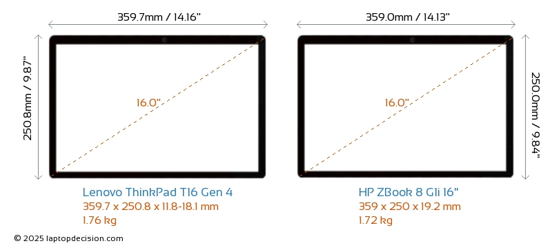 HDMIBoth ThinkPad T16 Gen 4 and ZBook 8 G1i 16" feature an HDMI port (1x HDMI 2.1) for connecting to external monitors.