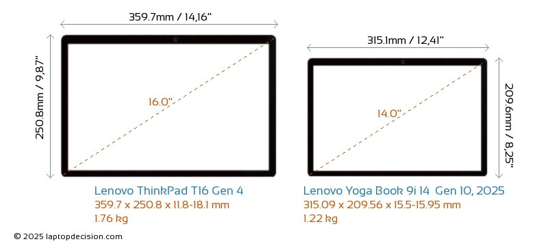ThunderboltBoth ThinkPad T16 Gen 4 and Yoga Book 9i 14 Gen 10, 2025 are equipped with Thunderbolt 4 ports.