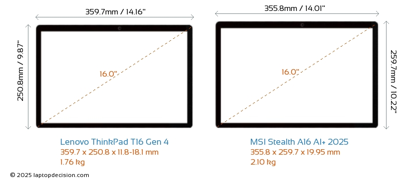 ThunderboltBoth ThinkPad T16 Gen 4 and Stealth A16 AI+ 2025 are equipped with Thunderbolt 4 ports.