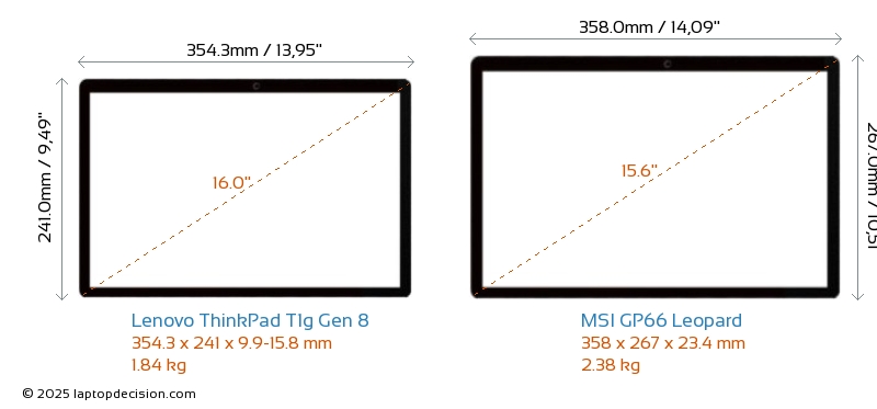 Thunderbolt ThinkPad T1g Gen 8 is equipped with Thunderbolt 5 port. GP66 Leopard does not have Thunderbolt port.