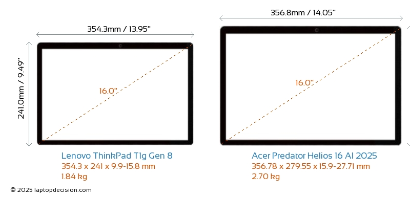 ThunderboltBoth ThinkPad T1g Gen 8 and Predator Helios 16 AI 2025 are equipped with Thunderbolt 5 ports.