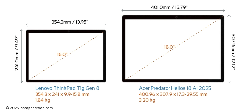 ThunderboltBoth ThinkPad T1g Gen 8 and Predator Helios 18 AI 2025 are equipped with Thunderbolt 5 ports.