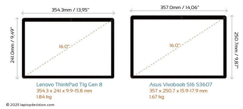 Thunderbolt ThinkPad T1g Gen 8 is equipped with Thunderbolt 5 port. Vivobook S16 S3607 does not have Thunderbolt port.