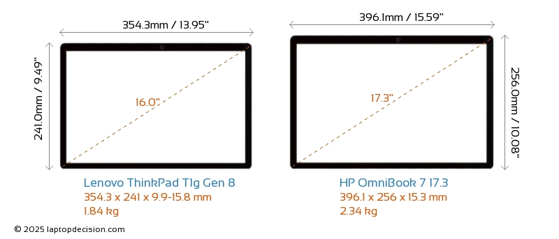 USBBoth ThinkPad T1g Gen 8 and OmniBook 7 17.3 have USB-A ports. ThinkPad T1g Gen 8 has 1x USB 3.2 USB-A ports, while OmniBook 7 17.3 has 3x USB 3.2 USB-A ports.Both ThinkPad T1g Gen 8 and OmniBook 7 17.3 have USB Type-C ports. ThinkPad T1g Gen 8 has 3x USB 4.0 USB Type-C ports, while OmniBook 7 17.3 has 2x USB 4.0 USB Type-C ports.