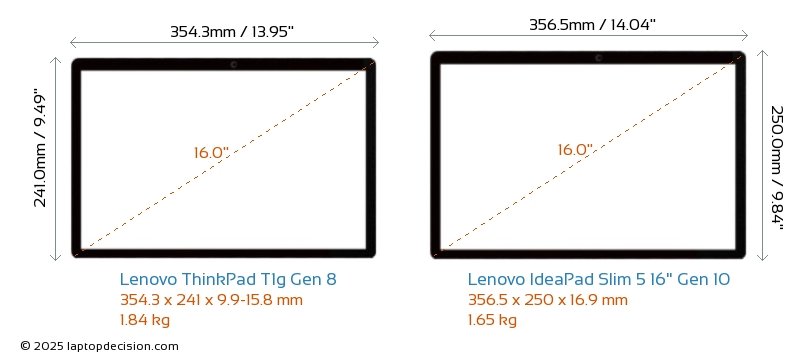 HDMIBoth ThinkPad T1g Gen 8 and IdeaPad Slim 5 16" Gen 10 feature an HDMI port. ThinkPad T1g Gen 8 offers 1x HDMI 2.1, while IdeaPad Slim 5 16" Gen 10 offers 1x HDMI 1.4.