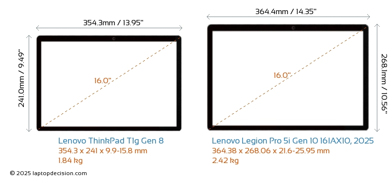 USBBoth ThinkPad T1g Gen 8 and Legion Pro 5i Gen 10 16IAX10, 2025 have USB-A ports. ThinkPad T1g Gen 8 has 1x USB 3.2 USB-A ports, while Legion Pro 5i Gen 10 16IAX10, 2025 has 3x USB 3.2 USB-A ports.Both ThinkPad T1g Gen 8 and Legion Pro 5i Gen 10 16IAX10, 2025 have USB Type-C ports. ThinkPad T1g Gen 8 has 3x USB 4.0 USB Type-C ports, while Legion Pro 5i Gen 10 16IAX10, 2025 has 2x USB 4.0 USB Type-C ports.
