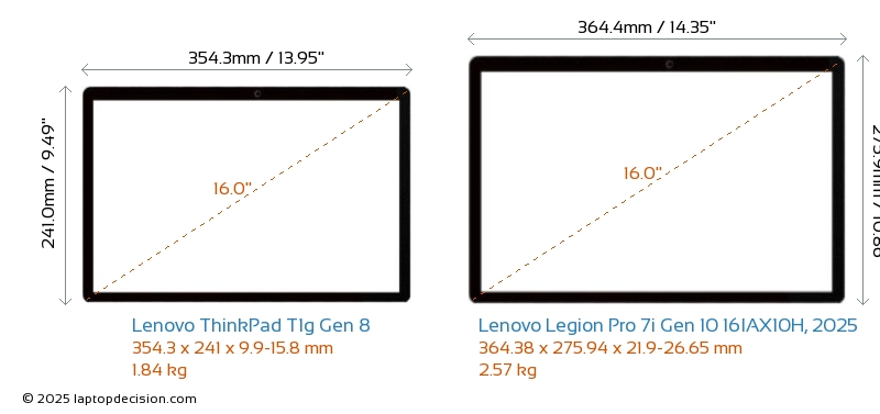 USBBoth ThinkPad T1g Gen 8 and Legion Pro 7i Gen 10 16IAX10H, 2025 have USB-A ports. ThinkPad T1g Gen 8 has 1x USB 3.2 USB-A ports, while Legion Pro 7i Gen 10 16IAX10H, 2025 has 3x USB 3.2 USB-A ports.Both ThinkPad T1g Gen 8 and Legion Pro 7i Gen 10 16IAX10H, 2025 have USB Type-C ports. ThinkPad T1g Gen 8 has 3x USB 4.0 USB Type-C ports, while Legion Pro 7i Gen 10 16IAX10H, 2025 has 2x USB 3.2 USB Type-C ports.