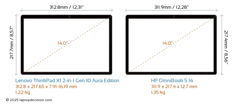 Audio JackBoth ThinkPad X1 2-in-1 Gen 10 Aura Edition and OmniBook 5 14 are equipped with a 3.5mm Audio Jack, providing seamless connection to headphones and speakers.