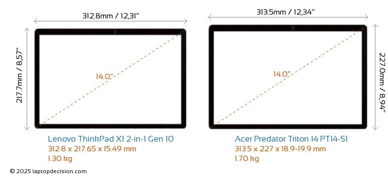 ThunderboltBoth ThinkPad X1 2-in-1 Gen 10 and Predator Triton 14 PT14-51 are equipped with Thunderbolt 4 ports.