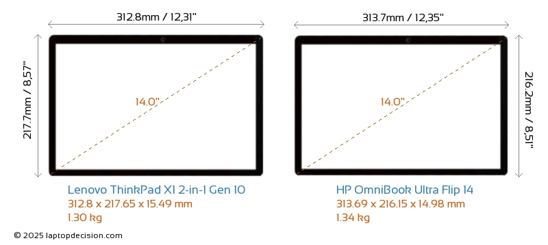 Audio JackBoth ThinkPad X1 2-in-1 Gen 10 and OmniBook Ultra Flip 14 are equipped with a 3.5mm Audio Jack, providing seamless connection to headphones and speakers.