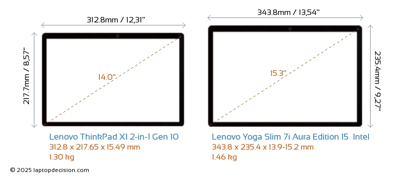 HDMIBoth ThinkPad X1 2-in-1 Gen 10 and Yoga Slim 7i Aura Edition 15 Intel feature an HDMI port (1x HDMI 2.1) for connecting to external monitors.
