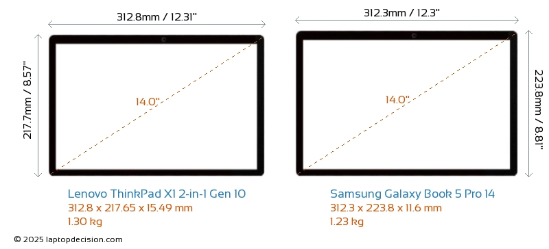 HDMIBoth ThinkPad X1 2-in-1 Gen 10 and Galaxy Book 5 Pro 14 feature an HDMI port (1x HDMI 2.1) for connecting to external monitors.