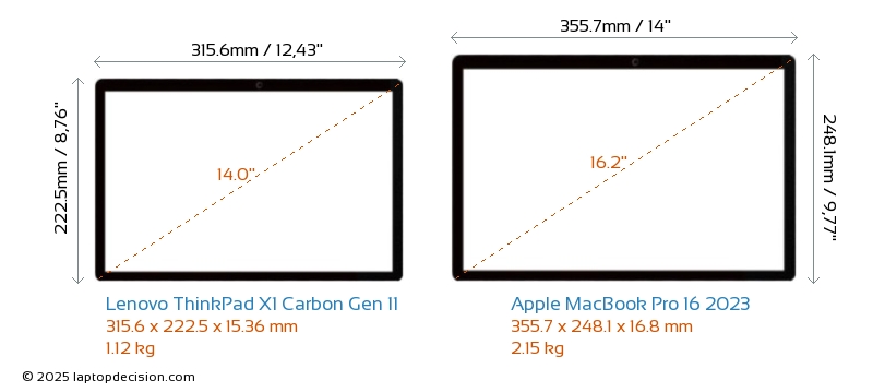HDMIBoth ThinkPad X1 Carbon Gen 11 and MacBook Pro 16 2023 feature an HDMI port. ThinkPad X1 Carbon Gen 11 offers 1x HDMI 2.0, while MacBook Pro 16 2023 offers 1x HDMI 2.1.