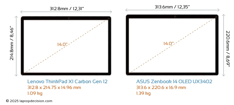 USBBoth ThinkPad X1 Carbon Gen 12 and Zenbook 14 OLED UX3402 have USB-A ports. ThinkPad X1 Carbon Gen 12 has 2x USB 3.2 USB-A ports, while Zenbook 14 OLED UX3402 has 1x USB 3.2 USB-A ports.Both ThinkPad X1 Carbon Gen 12 and Zenbook 14 OLED UX3402 have USB Type-C ports. ThinkPad X1 Carbon Gen 12 has 2x USB 4.0 USB Type-C ports, while Zenbook 14 OLED UX3402 has 2x USB 3.2 USB Type-C ports.