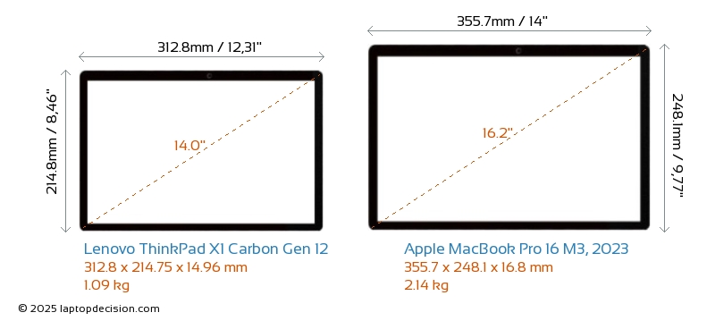 Lenovo ThinkPad X1 Carbon Gen 12 vs Apple MacBook Pro 16 M3, 2023 Comparison