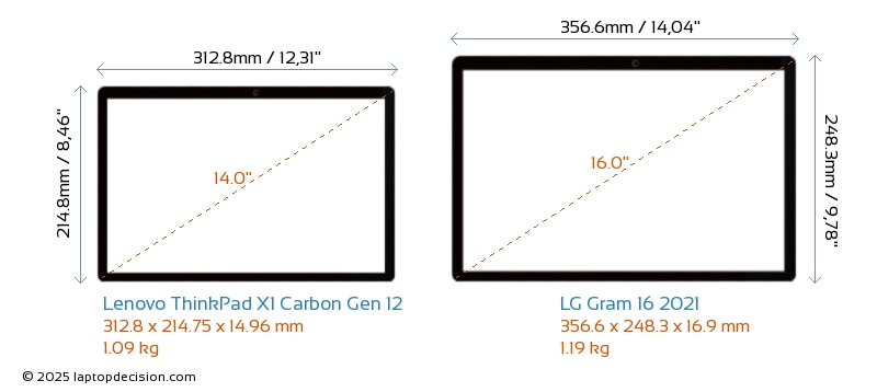 ThunderboltBoth ThinkPad X1 Carbon Gen 12 and Gram 16 2021 are equipped with Thunderbolt 4 ports.