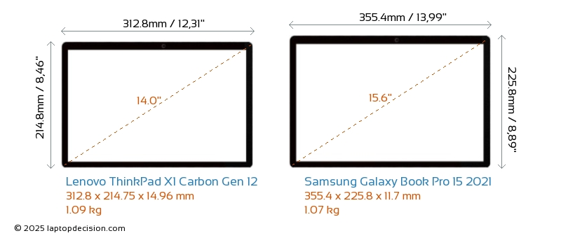 HDMIBoth ThinkPad X1 Carbon Gen 12 and Galaxy Book Pro 15 2021 feature an HDMI port. ThinkPad X1 Carbon Gen 12 offers 1x HDMI 2.1, while Galaxy Book Pro 15 2021 offers 1x HDMI 2.0.