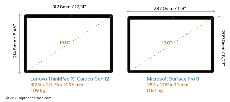 Audio Jack ThinkPad X1 Carbon Gen 12 is equipped with a 3.5mm Audio Jack, allowing seamless connection to headphones and speakers. Surface Pro 9 does not have a 3.5mm Audio Jack.