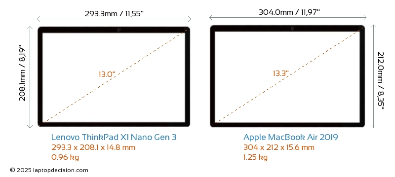 ThunderboltBoth ThinkPad X1 Nano Gen 3 and MacBook Air 2019 feature Thunderbolt ports. ThinkPad X1 Nano Gen 3 has Thunderbolt 4, while MacBook Air 2019 has Thunderbolt 3.